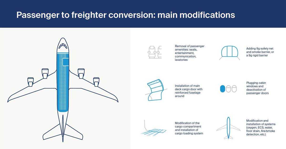 Covid-19 has strongly affected the aerospace industry. Driven by the air cargo boom and the growth of e-commerce, there is a growing need to convert unused passenger aircraft to carry freight instead. Based on the current market, analysts expect a growing demand for passenger to freighter conversion (P2F). This creates an opportunity for aircraft manufacturers, maintenance organisations, airlines and leasing companies.