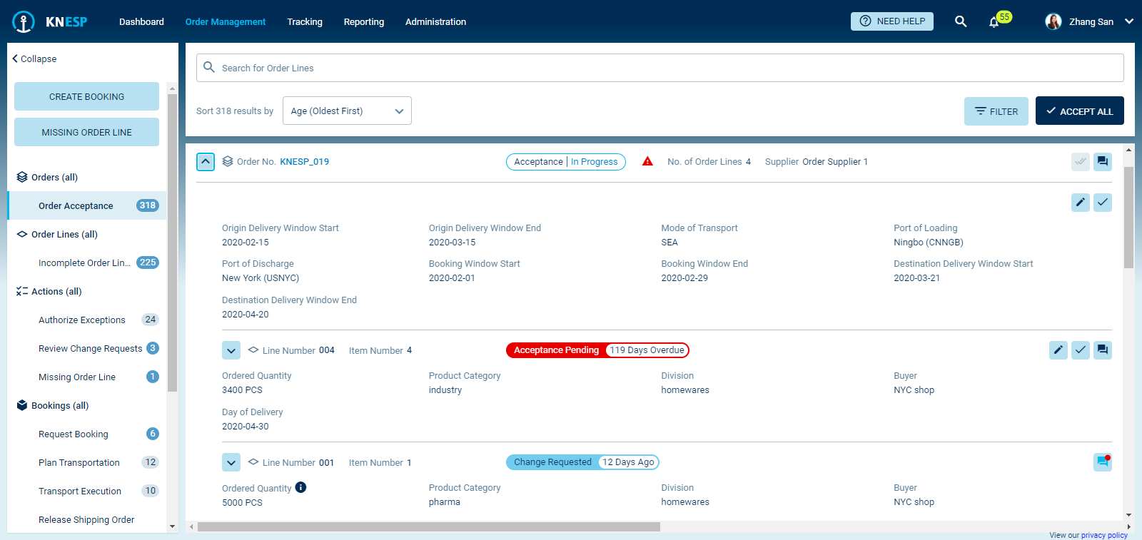 - Χρησιμοποιήστε την πλατφόρμα διαχείρισης παραγγελιών KN ESP για να αυξήσετε τη διαθεσιμότητα των προϊόντων και τα επίπεδα εξυπηρέτησης πελατών μέσω βελτιωμένης απόδοσης προμηθευτή, βέλτιστων δρομολογίων και προβλέψιμων ωρών άφιξης: